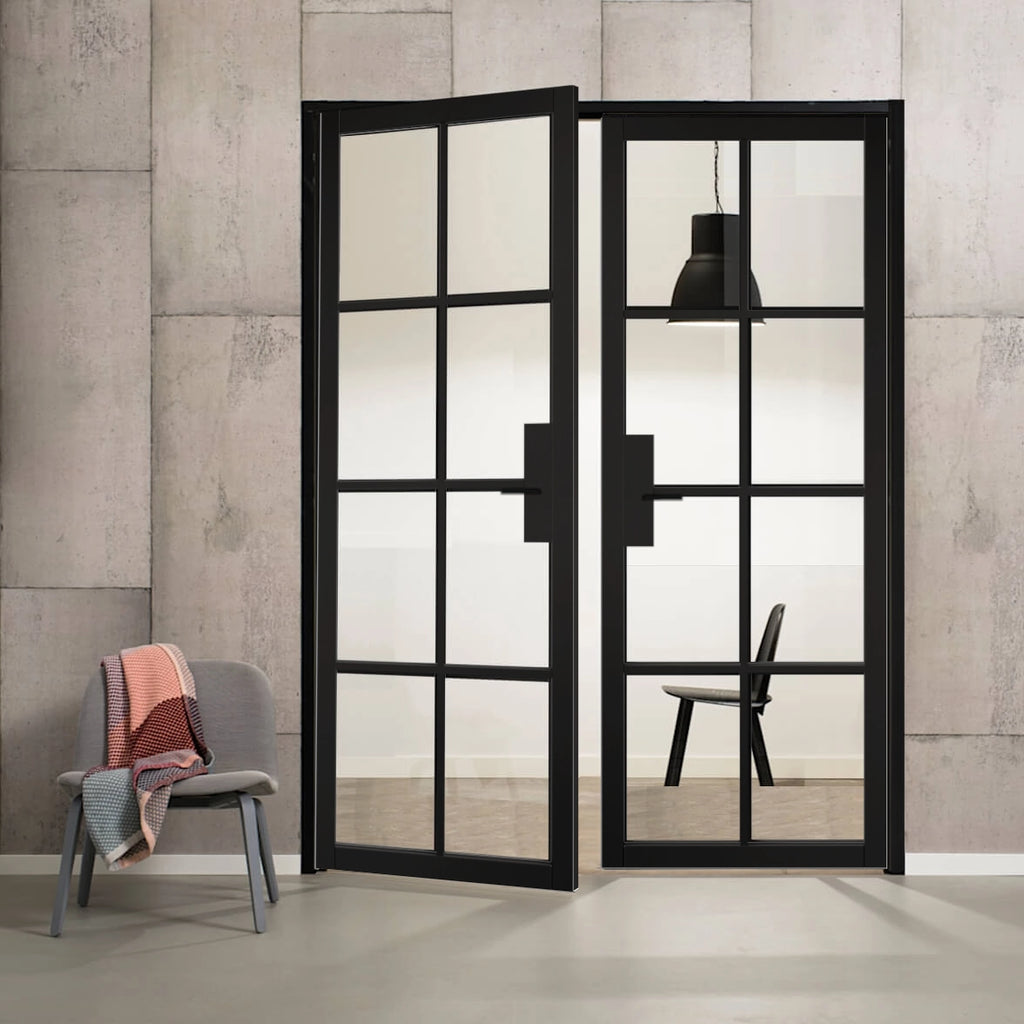 Industrial style interior doors with a sleek, modern, tough and timeless design, characterised by a refined appearance and a sleek profiling, perfect for a modern and sleek interior.