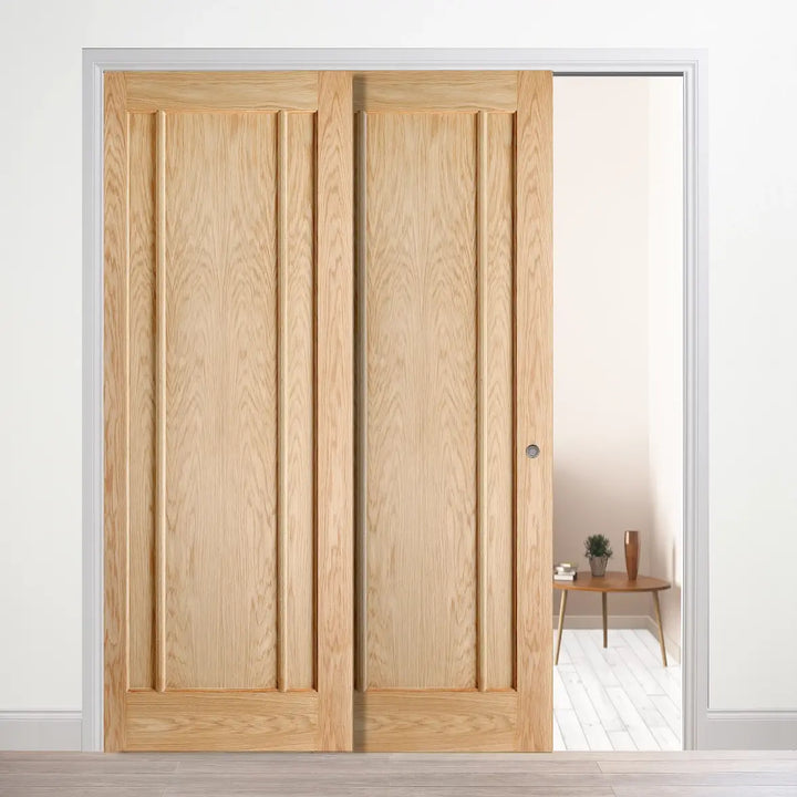 Transform your home with our Lincoln Oak Telescopic Pocket Door System, this door features elegant detailing which is perfect for traditional interiors, experience the beauty and convenience of our telescopic Lincoln Oak door system.