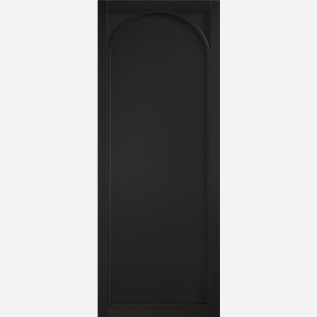In an elegant pre-finished black, the sleek arched design of our Melrose door makes it perfect for a minimalist home. Featuring a solid engineered core, this door provides both function and style to your home.