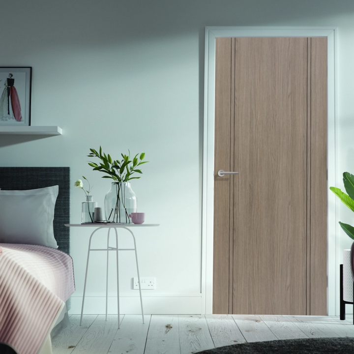 The Monaco internal door is supplied fully finished in light grey and ready to hang, the door design features solid black inlays down the edges which enhances the contemporary modern look.