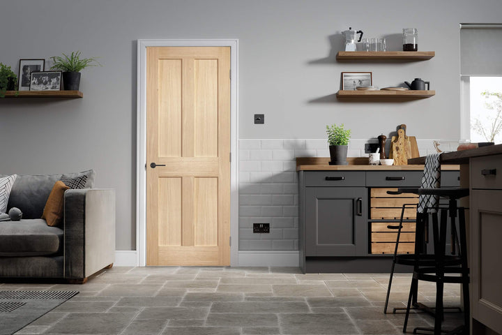 The Oak Victorian 4 Panel Internal Door adds traditional charm and undeniable style to your home. Featuring a classic 4 panel design, the flat panels create an elegant depth and character to the design. It's solid construction provides strength and stability, with 10mm lippings and trimming allowance of up to 6mm. Plus, white oak veneers ensure quality and durability.