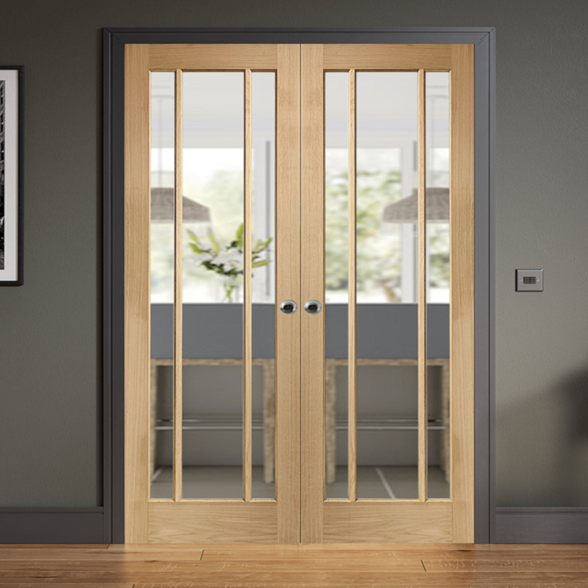 Transform your space with the sleek and modern Oak Worcester Clear Glazed Internal Door. Designed with 3 large clear glass panels, this door maximises natural light flow and the natural grain adds an attractive look which will boost the appearance of any room. Its real Oak veneer allows for a perfect match to your existing interior.