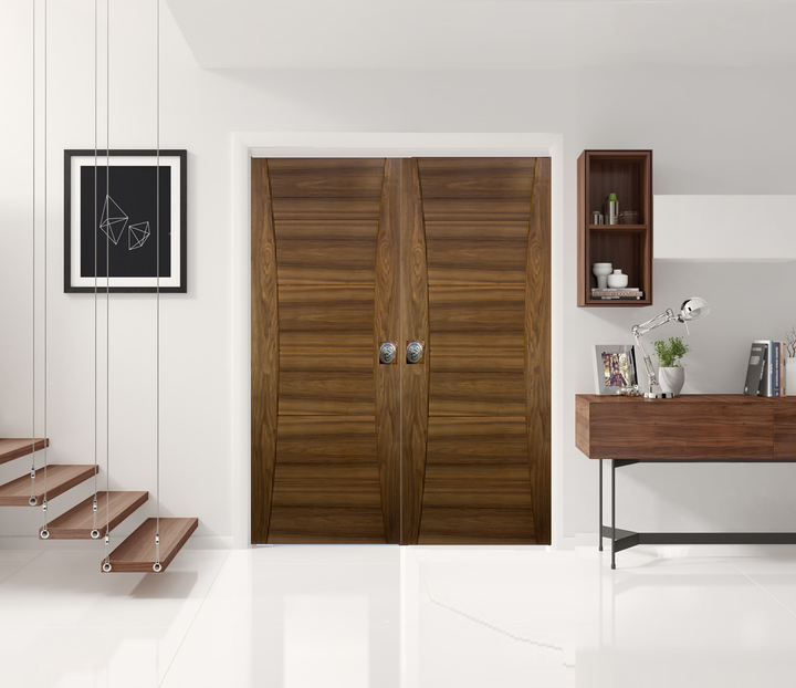 Visually striking the Pamplona door features curved V grooves and supplied fully finished, saving you the hassle of varnishing.