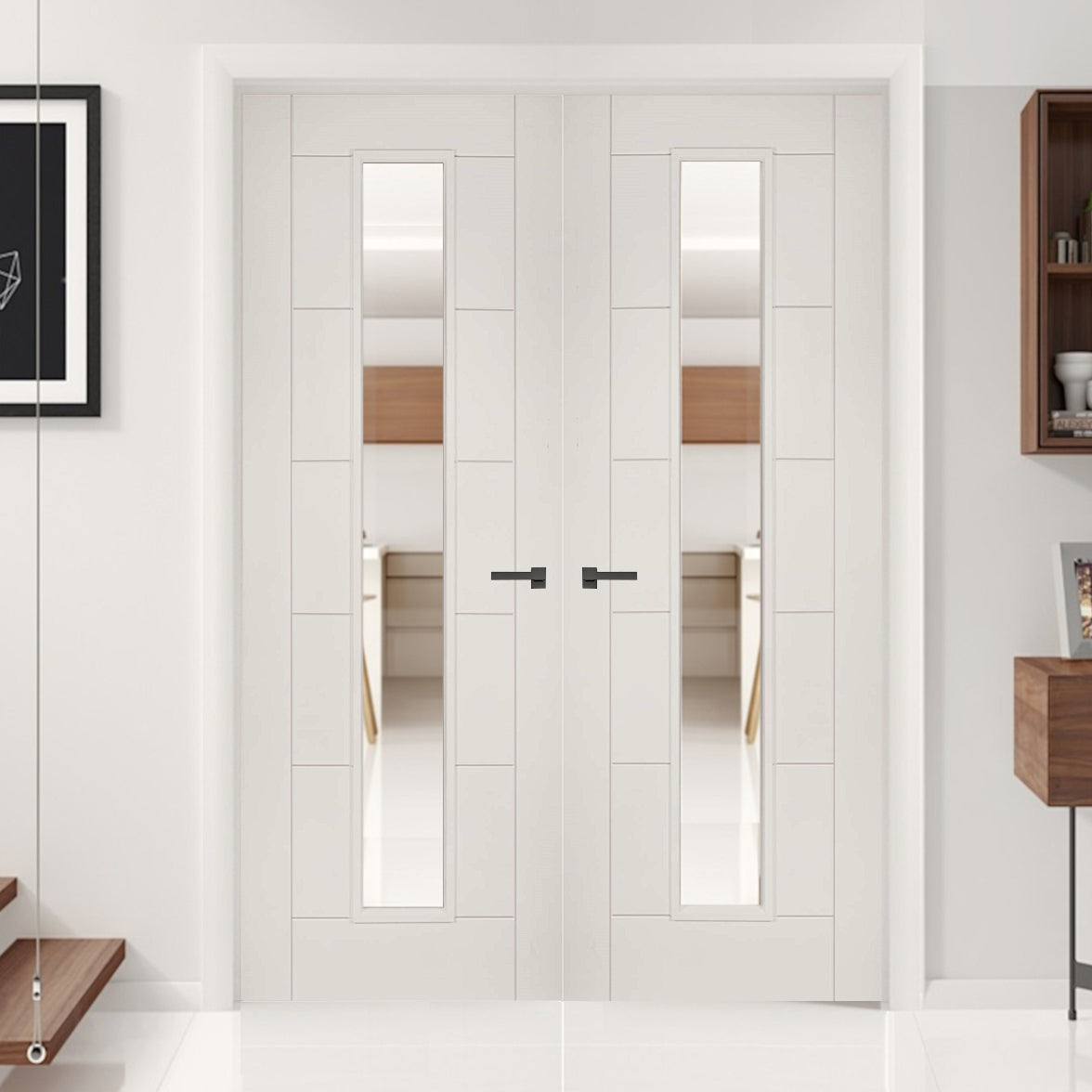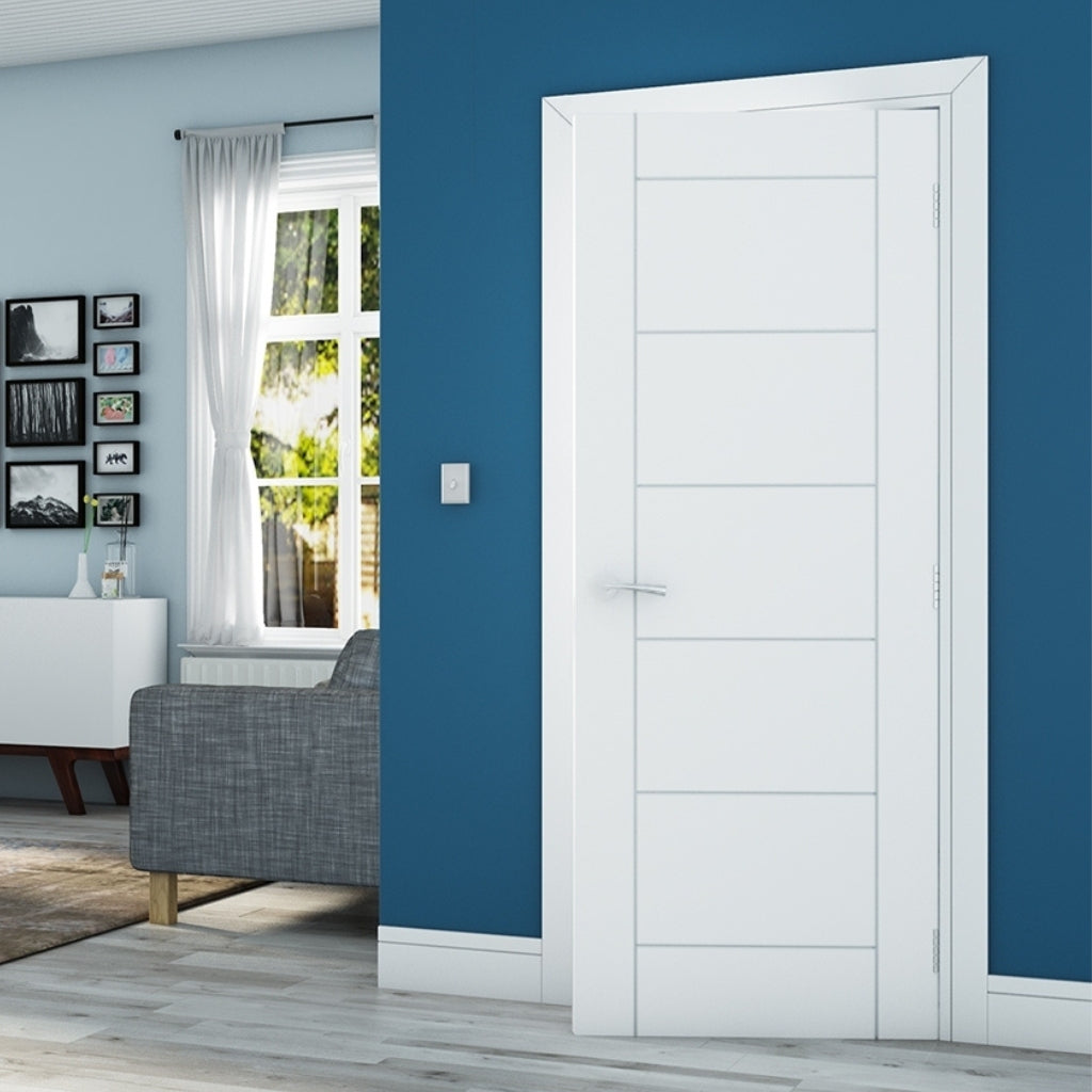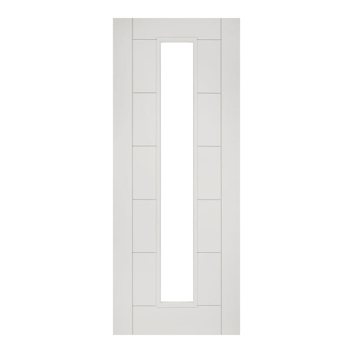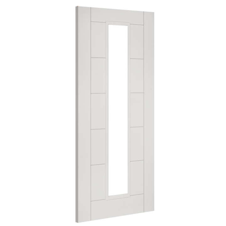 Our Seville white primed door adds a natural modern style to any home, the clean bold lines give this contemporary door an unmistakable look. Fire rated 30 minutes with clear fire glass.