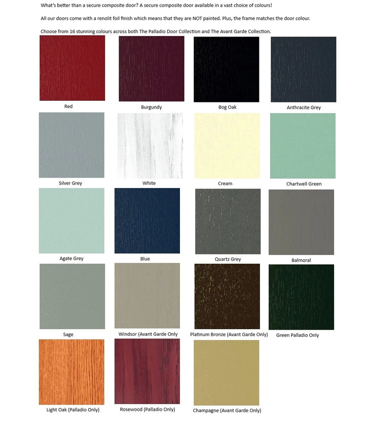 There are 3 main collections, The Palladio Classic, The modern Avant Garde, and the Pillar collection, which include Georgian pillars on both sides of the door.