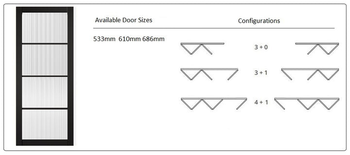 The Soho door set is available in the following door size options, 533mm / 610mm / 686mm