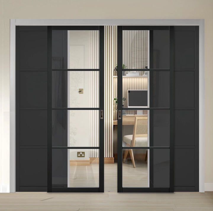 Soho Black 4L Clear Glazed Sliding French Doors with Fixed Panels