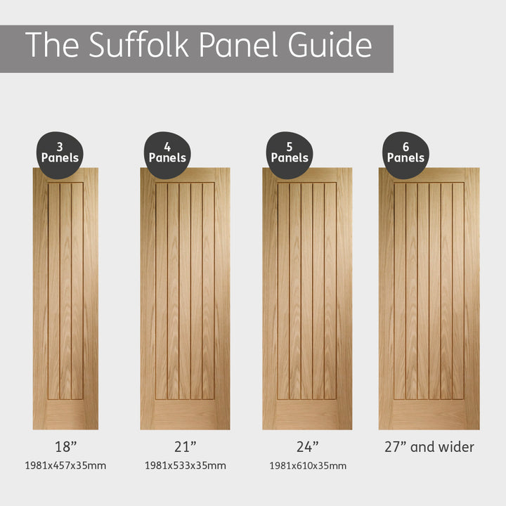 The Suffolk Essential Oak Internal Door is fully finished and provides a stunning classic oak design with 6 slat boarded features. Natural beauty is enhanced with deep U-grooves and real oak veneer, giving a superior look and eliminating the need for decoration. This market-leading door is completed with matching glazed and fire doors