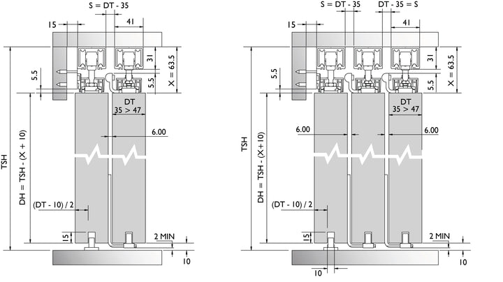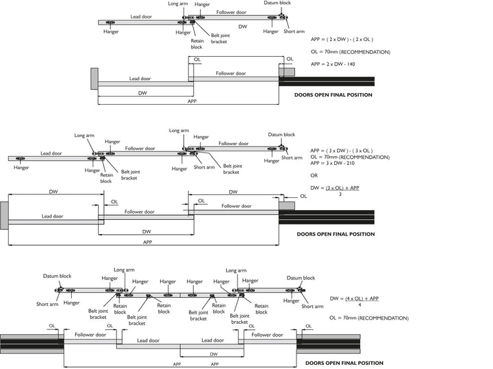 - Ideal for sliding partitions as doors can be neatly stacked to one or both sides of the opening