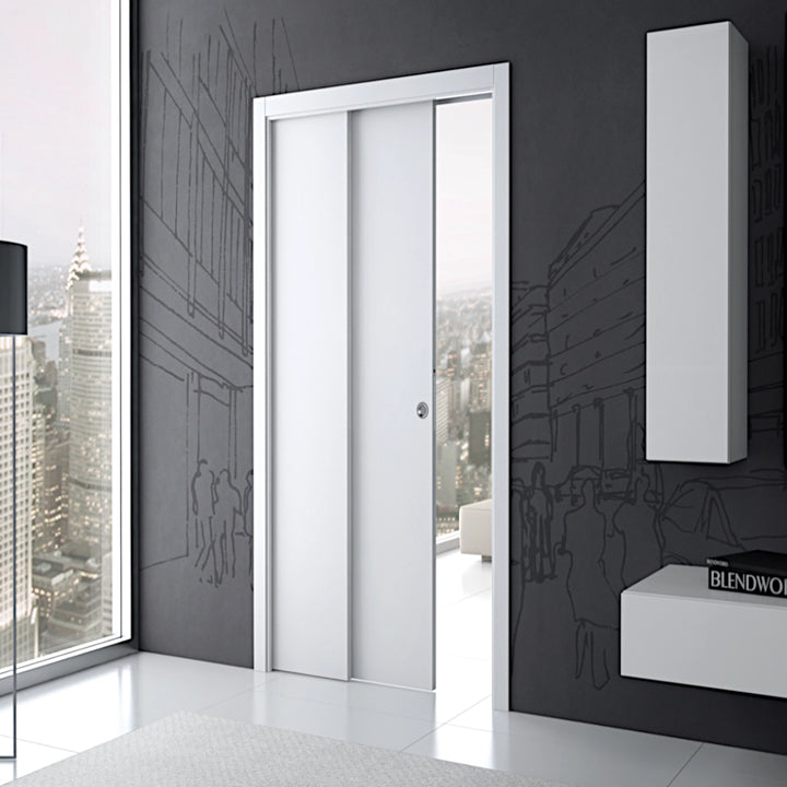 A single telescopic pocket door system allows two door panels to slide back into the same pocket in the wall. Combine this with a synchronization device and your doors will slide into the frame smoothly and simultaneously. The system is supplied with a comprehensive timber lining kit (jambs) to finish the installation perfectly.