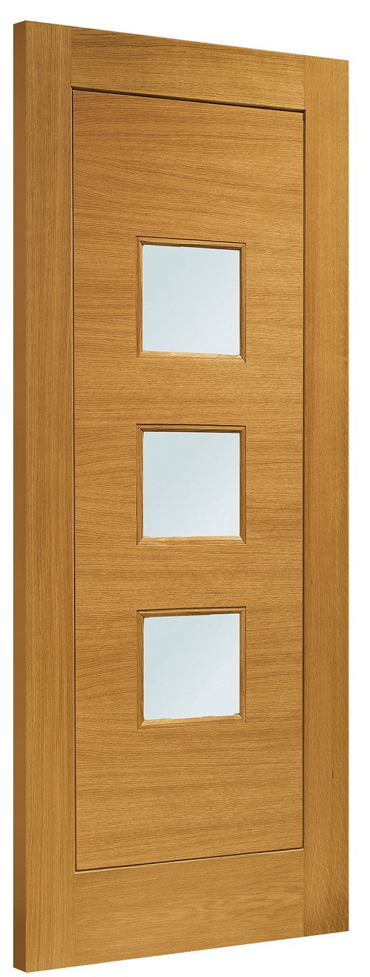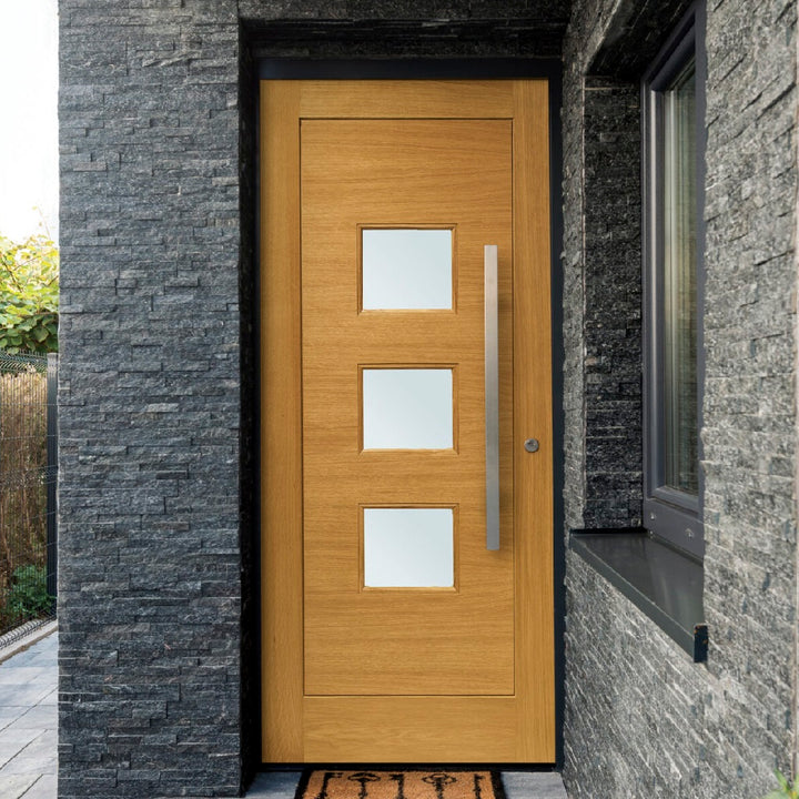 Contemporary design and finished with a Medium Oak Stain, fitted with Obscure Double Glazing.