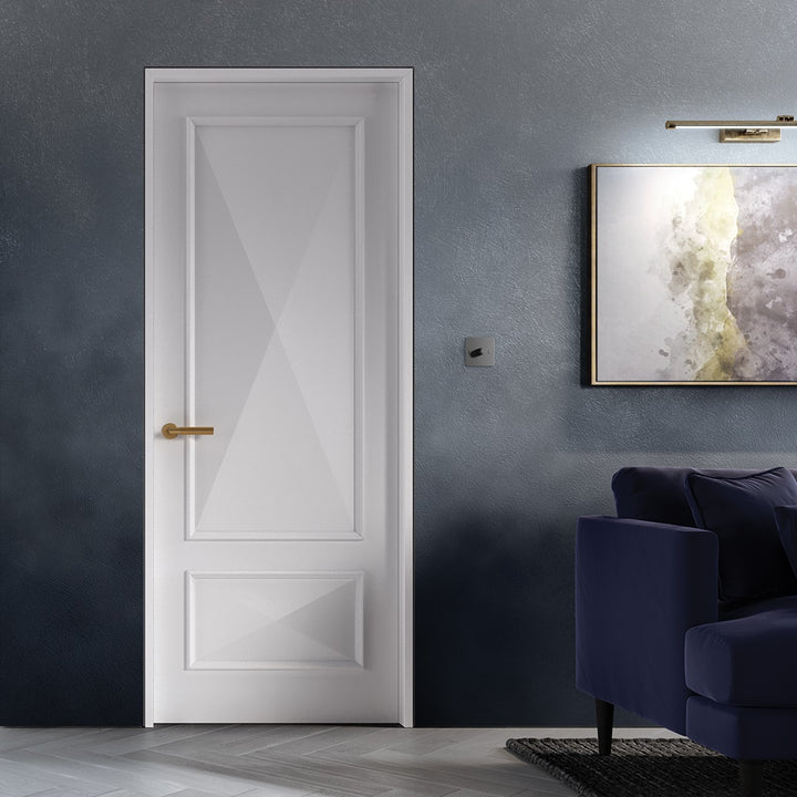 Introducing our White Knightsbridge Fire Door - adding traditional elegance to your space with its uniquely stylish 'cricket bat' moulding detail. Elevate your decor with stately style and a touch of sophistication. 30 minutes fire rated for added protection.