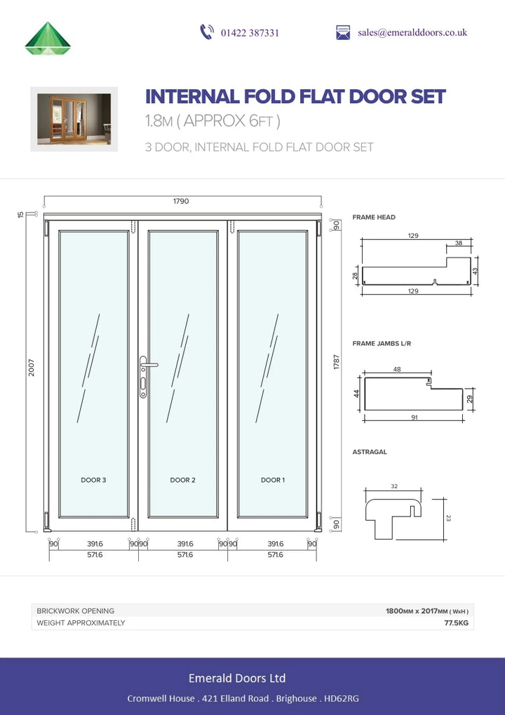 The fold-flat is a new innovative design that features the Pattern 10 white fully finished 40mm thick internal doors and matching door frame. This set is ideal for creating a spacious and modern look in your home.